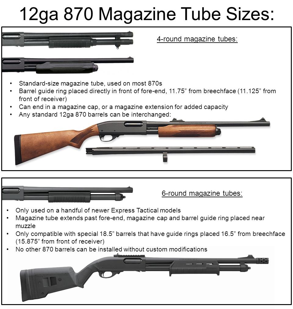 Not sure what you mean by your measurements. There's no way a 6-shot tube is only 6.75" long. I'm assuming your 870 is one of the Express Tactical Magpul Editions set up from the factory with the Magpul furniture, and not something you've assembled yourself based on another order number, but clarification (or simply a picture) would help. This is important because the Magpul Edition guns are built on the special tactical receivers with solid 6-round magazine tubes, not the standard 4-round tubes.